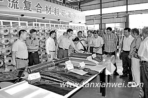 中化新网讯 中科院宁波材料所承担的“863”项目高性能纤维及复合材料制备关键技术子课题——国产碳纤维快速热压成型关键技术研究,近日通过国家科技部高技术中心组织的中期检查。该课题实施以来,宁波材料所在国内首次完成了连续碳纤维复合材料快速热压成型成套装备的研制,实现了国产连续碳纤维复合材料汽车部件的自动化制备,效率可达6件/时。图为专家组成员考察碳纤维实验室。 (仲科 摄) copyright 123456