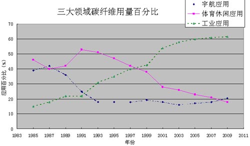 前四项约占CF耗量的85%左右,其他只占15%左右。我国的台湾有“复合材料体育用品王国”之称,但近年来已向大陆转移。台湾碳纤维2007年可有3000吨/年的产能。