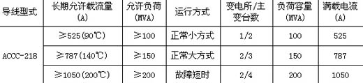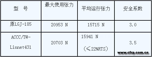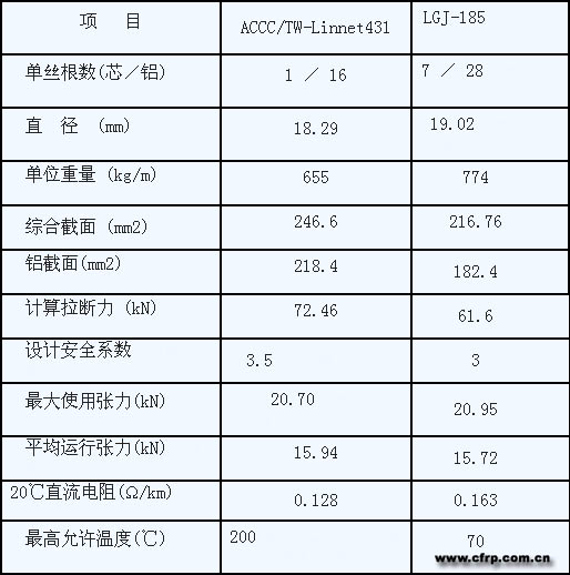 碳纤维复合芯导线的铝面积218平方米,大于原LGJ-185导线182.4平方米的铝面积,载流能力大大增加。下表反映了本次选定的碳纤维复合芯导线与原导线参数的对比情况。