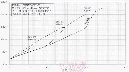 这个结果说明,ACCC/TW在160℃高温以上,拉断力距不小于90%计算拉断力的要求有一定的损失,随着温度上升,损失逐步加大。
