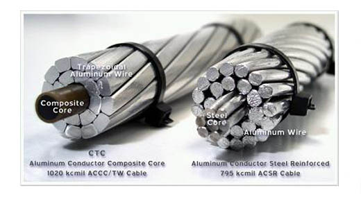 碳纤维复合芯采用合成碳纤维,全部都是非铁磁性材料,而且不导电,所以不存在钢丝材料引起的磁损和涡流损耗,在输送相同负荷条件下,具有更低的运行温度,可减少输电损失约6%。外层采用导电率不小于63%IACS的铝线。