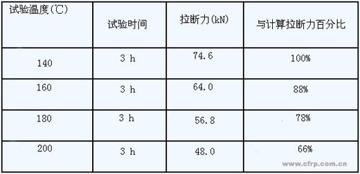 结果表明,碳纤维复合芯经过不同加热温度和不同加热时间后,恢复正常温度后,芯仍能保持不小于90%计算拉断力的拉力。