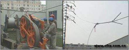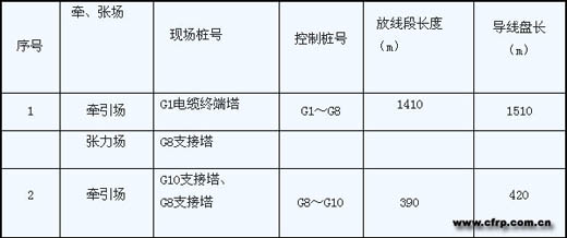 选择和布置牵张场。采用一台牵引机、一台张力机进行导线展放施工,一牵一展放方式。为了避免ACCC导线与原线路旧导线之间的磨碰。本工程利用原线路LGJ-185导线作为牵引绳张力展放ACCC导线。