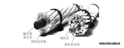 图1:碳纤维复合铝绞电缆(左)和钢芯铝绞电缆(右)