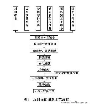 c波段天线主要由天线反射面及其它支撑结构组成。本文着重介绍其反射面型面精度和尺寸稳定性控制,根据我单位承担某型号任务要求,其天线反射面的制造工艺流程,见图2。