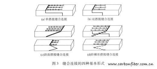 选用何种搭接方式主要是根据制件的几何形状的变化的复杂性开设不同形状的窗口、预留不同形状的凹糟、预埋各种金属件等具体情况来决定,并且要使缝合连接工艺尽可能简单、成本尽可能低、连接强度尽可能大。