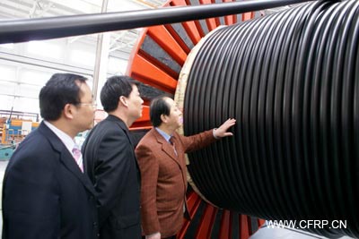 碳纤维和玻璃纤维复合芯铝绞电缆,英文是Alu-minum conductor composite core reinforced cable,简称ACCC,碳纤维复合芯铝绞电缆的制造技术日臻成熟,主要采用连续拉挤法。核心技术是芯棒的制造,关键材料是高温韧性环氧树脂。在碳纤维复合芯棒中,碳纤维占35%,玻璃纤维占35%,高温韧性环氧树脂占30%。所用碳纤维的拉伸强度高和断裂伸长大,例如采用日本东丽公司生产的T700S;玻璃纤维采用耐碱的E型,即E-GF。E-GF的断裂伸长值大于T700S,因而为所制芯棒提供韧性和耐冲击性能。同时,E-GF的价格低于T700S,可降低生产成本。E-GF为绝缘体,为芯棒提供绝缘层。所用环氧树脂为高温型的韧性树脂。这是制造复合芯棒的又一技术核心。这种树脂固化温度高达260℃,一般环氧树脂648或AG80的固化温度都低于此值。换言之,这种高温固化型环氧树脂具有特殊的耐热结构。 copyright 123456