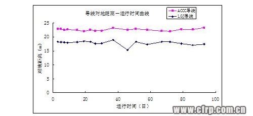 碳纤维导线(ACCC)与钢芯铝绞线(LGJ)的对地距离变化曲线