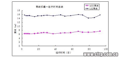 碳纤维导线(ACCC)与钢芯铝绞线(LGJ)的弧垂变化曲线