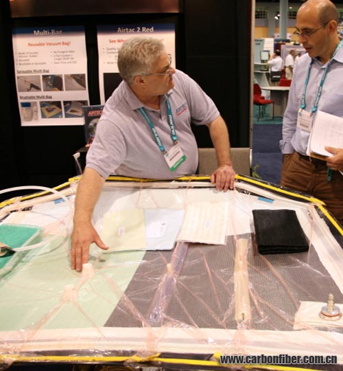 Airtech先进材料集团为灌注、手糊和高温(395℃)高压固化工艺生产真空袋和复合材料模具材料。Toolfusion环氧基模具树脂可采用灌注工艺制成符合材料模具。Airtech说这种工艺比传统的手糊或喷射工艺更清洁也更简便。该公司还生产Econo系列真空袋产品,包括一种可循环使用的硅橡胶袋系统Multi-Bag。低粘度的液态硅胶涂覆在增强丝网材料上后,室温下固化48-72小时而成。