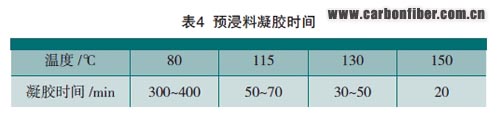 加压点包括加压温度、加压时机。加压点的选择, 首先是加压温度,加压温度过低则树脂流动性不好,纤维不易均匀浸润易造成缺陷;加压温度过高,树脂聚合速率过快不易掌握加压时机。其次在确定加压温度的前提下把握好加压时机,加压时机过早则树脂粘度低,排出树脂过多造成零件贫胶、孔隙率高;加压时机过晚则树脂聚合程度高,流动性差制件易夹杂气泡产生疏松、分层等缺陷。加压点的最佳选择为树脂由粘流态向高弹态转变过程中的过渡区间。这和升温速率、加压温度、加压时机都密切相关,不同的温度—时间曲线有着不同的加压点。目前经常采用差热分析仪和流变仪来了解树脂的固化反应过程和粘度变化过程,实际生产中也有用滑板法或拉丝法测定凝胶时间来了解树脂在温度—时间曲线各个点的粘度情况,如表4、表5所示。 内容来自123456