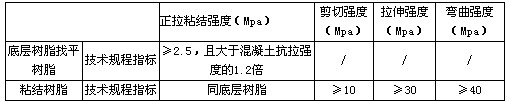 配套树脂粘结材料的主要力学性能指标: